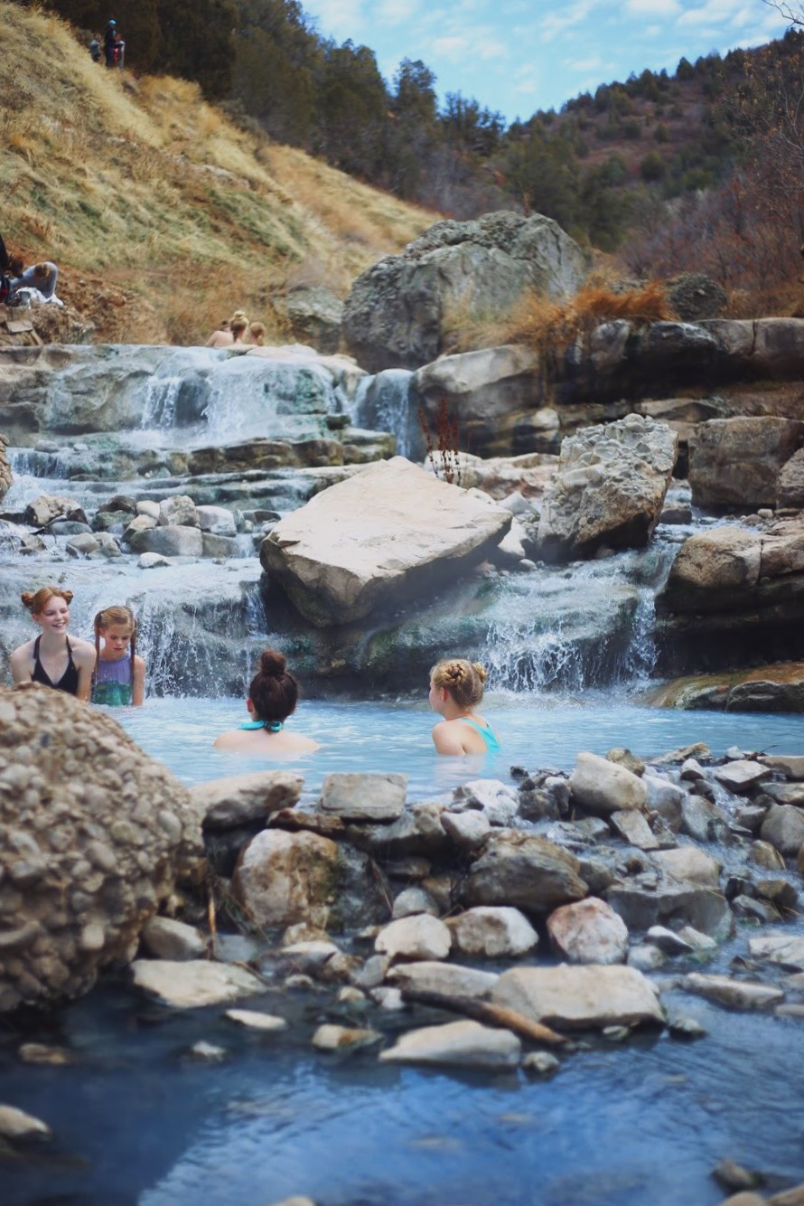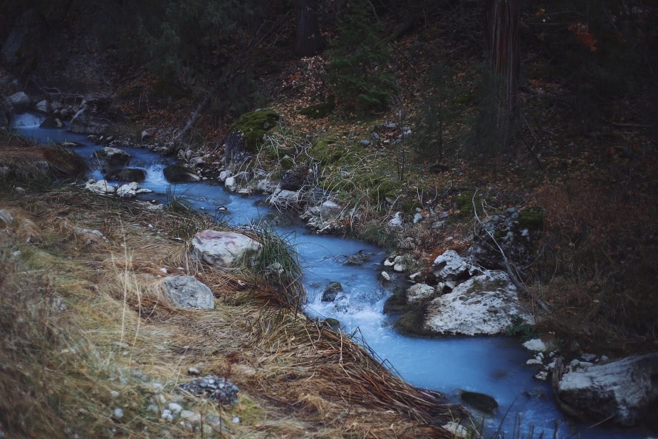 Nestled in the middle of a forest east of Spanish Fork, Utah is a natural hot spring gushing with warm water. This hot spring is called Fifth Water Hot Springs. It’s also known as Diamond Fork Hot Springs because the creek is hidden within Diamond Fork Canyon, and eventually expels into Diamond Fork River. It’s been dubbed the most picturesque hot spring in Utah. Although I haven’t seen all the hot springs in Utah, I could see why it brings visitors every day. The waters are bright blue and you’re surrounded by the most gorgeous mountains. During the wintertime, visiting the springs is an even more magical experience. The hills are powdered with snow, and you can see the steam rising into the cold air.