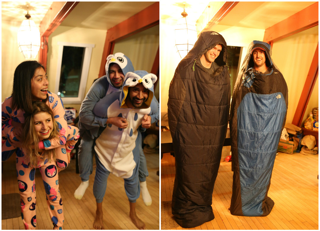 My favorite part of the trip were the themed parties! Our first night in Tahoe we had a onesie themed party. Everyone sported a onesie and played board/drinking games. It was surprising to see what kind of onesie everyone came up with. Wearing a onesie that weekend was not only fun and silly, but it was one of the best investments I’ve EVER made. Whoever says adult onesies aren’t cool is SO wrong. It’s the coziest thing I’ve ever worn.